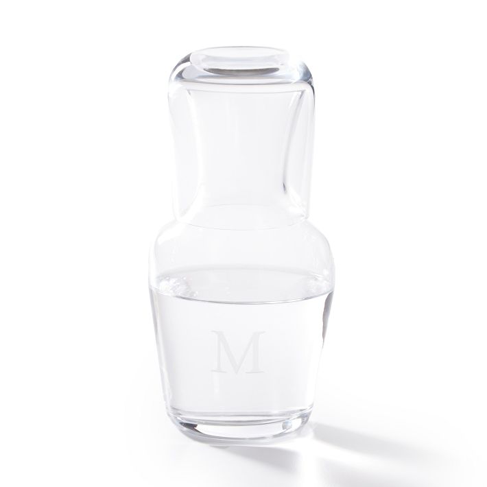 Just what your nightstand is missing. This convenient carafe is hand blown with a heavy base, and the matching cup fits over the top for easy bedside sipping. Whether for wine or water, this simple but stunning gift can be etched with a personalized monogram.