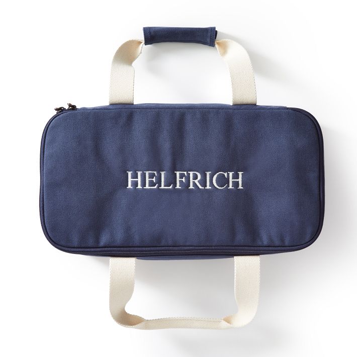 Hours of outdoor family fun in a bag. This bocce ball set includes everything you need to play the classic game, just add lawn. Colorful resin balls fit snugly in a canvas carrying case that can be personalized with the monogram of your choice. A thoughtful gift for the friend who has everything, it’s the perfect casual afternoon game that all can play.