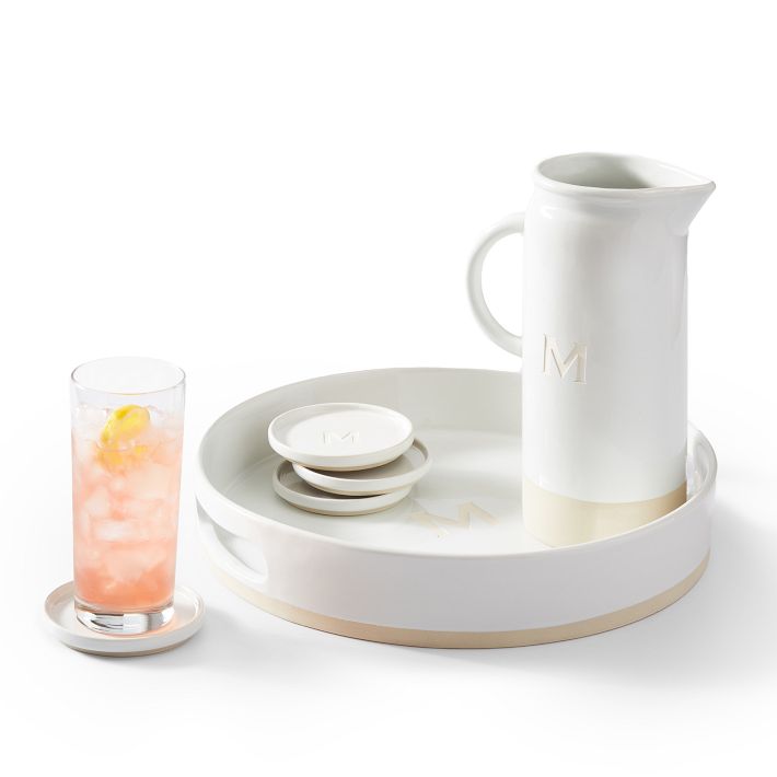 Introducing the latest addition to our best selling dipped ceramic collection. With a clean and minimalist design, this glazed pitcher is molded by hand and finished with a dipped glaze and a handle for easy pouring. Serve your favorite beverages or use it as a vase for your favorite flowers. Add a laser engraved monogram to personalize it for yourself or for your favorite host.