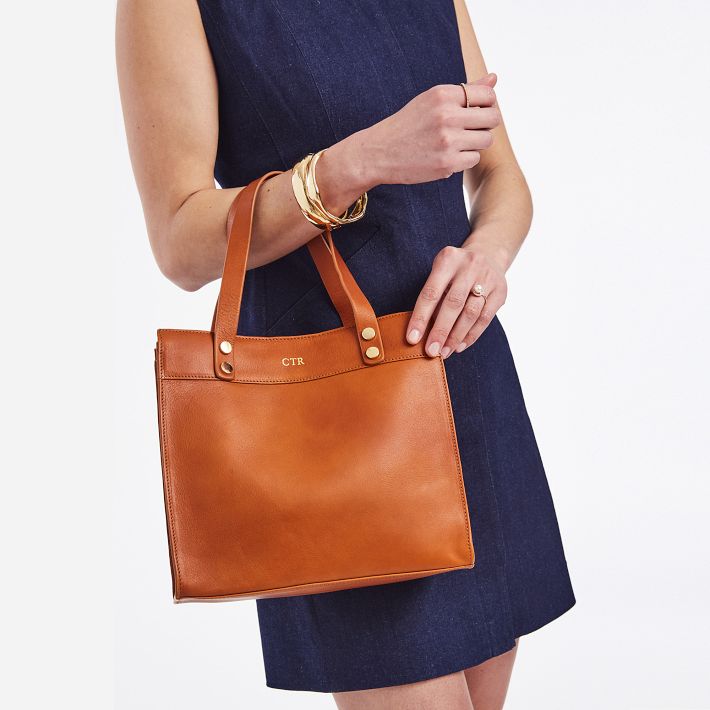 Crafted from high quality leather, our Small Essential Leather Tote features a spacious, open-tote design with leather carry handles and an adjustable, leather crossbody strap that can be swapped be swapped out for one of our colorful straps to create your own style. Add a foil debossed monogram to add a personal touch to your new everyday tote.