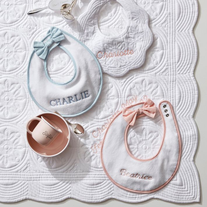 A cuddly keepsake they’ll cherish for years to come. Crafted from super soft cotton with gorgeous quilted designs and a scalloped edge, this monogrammed baby blanket is anything but basic. Perfect for the crib or rides in the strollers, it's sure to keep them cozy in style. Embroider with your personalized message and give as a memorable gift at showers and first birthdays.