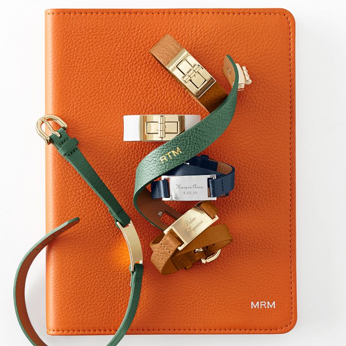 That’s a wrap: a bold and stylish accessory for colorful people who like to make a subtle style statement. Made from leather, it has a turn-key style closure and a foil debossed monogram, placed opposite the clasp, makes it yours.