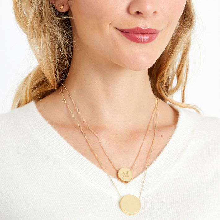 • Single initial monogram is engraved on the disc of the shorter necklace.