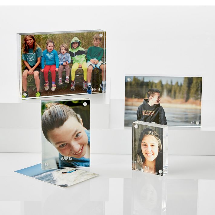 Keep your precious images front and center with this modern and minimalist magnetic frame. Available in an assortment of sizes, these solid acrylic frames can be positioned as portrait or landscape orientation, and work great in multiples to tell a whole story. A wonderful gift, they feature a sweet and subtle laser-engraved monogram.