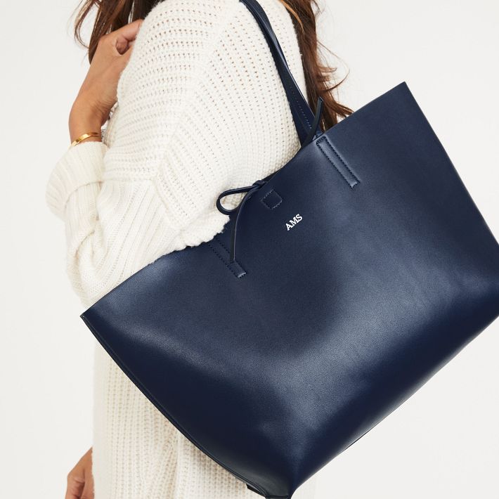 Designed as your go-anywhere, do-anything collection, the Fillmore Totes and Pouches are crafted from soft Faux Leather and feature classic topstitching and contrasting natural interiors. The perfect pair for everyday use, the oversized tote is spacious enough to fit all your daily essentials and can be secured with a leather tie, while the pouch can be used as a tote organizer or carried alone as a night-out clutch. Choose your favorite color and your foil debossed monogram. Buy the Fillmore Tote and Pouches separately or save when you buy the set!