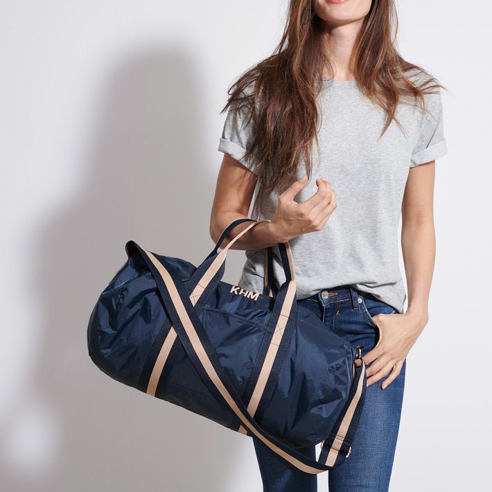 The Ripstop Duffel is expertly crafted from durable nylon ripstop and designed to fold in on itself, making it the perfect choice for travel. The ultra-lightweight nylon ripstop is woven using a special reinforcing technique that makes it resistant to rips, tears, and water. Easy to carry with an adjustable shoulder strap and handles, the duffle features an open pocket for easy access to your phone while you’re on the move and spacious main compartment that will fit everything you need for adventures near and far. Add an embroidered monogram to make it yours.