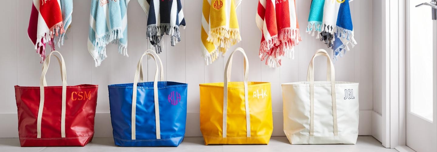 - Hit the beach or pool with personalized beach bags from Mark and Graham. These carryall bags excel at both style and function and come in a range of styles and materials. They're made from natural materials like canvas and straw. You can also build your own bag and choose the color, style and strap for a look that's all your own.