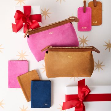 If you've got a fashion lover on your list, give them a leather card case in an unexpected color like orchid or kelly green. The outer slot is designed to hold cards to which you need quick and easy access, while the interior pouch is good for keeping cash. Foil debossed monogramming adds a special touch to this stylish, functional item. Match it with a monogrammed leather pouch in the same hue, which can be used to carry change or other small items.